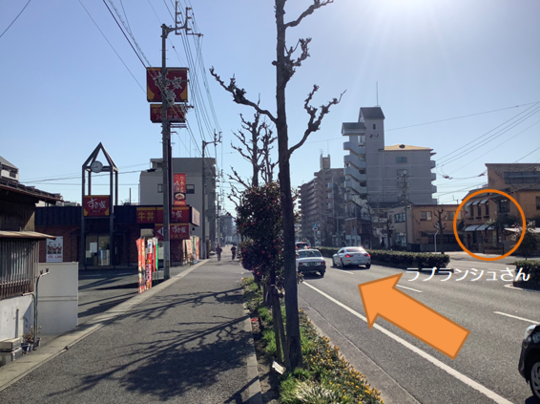 サクラメント通りを直進します。左手にすき家さん、右手にラブランシュさんがあります。